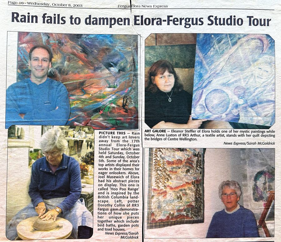 Geoffrey Stevens and Linda Copp invited Elora and Salem artists to open their studios.