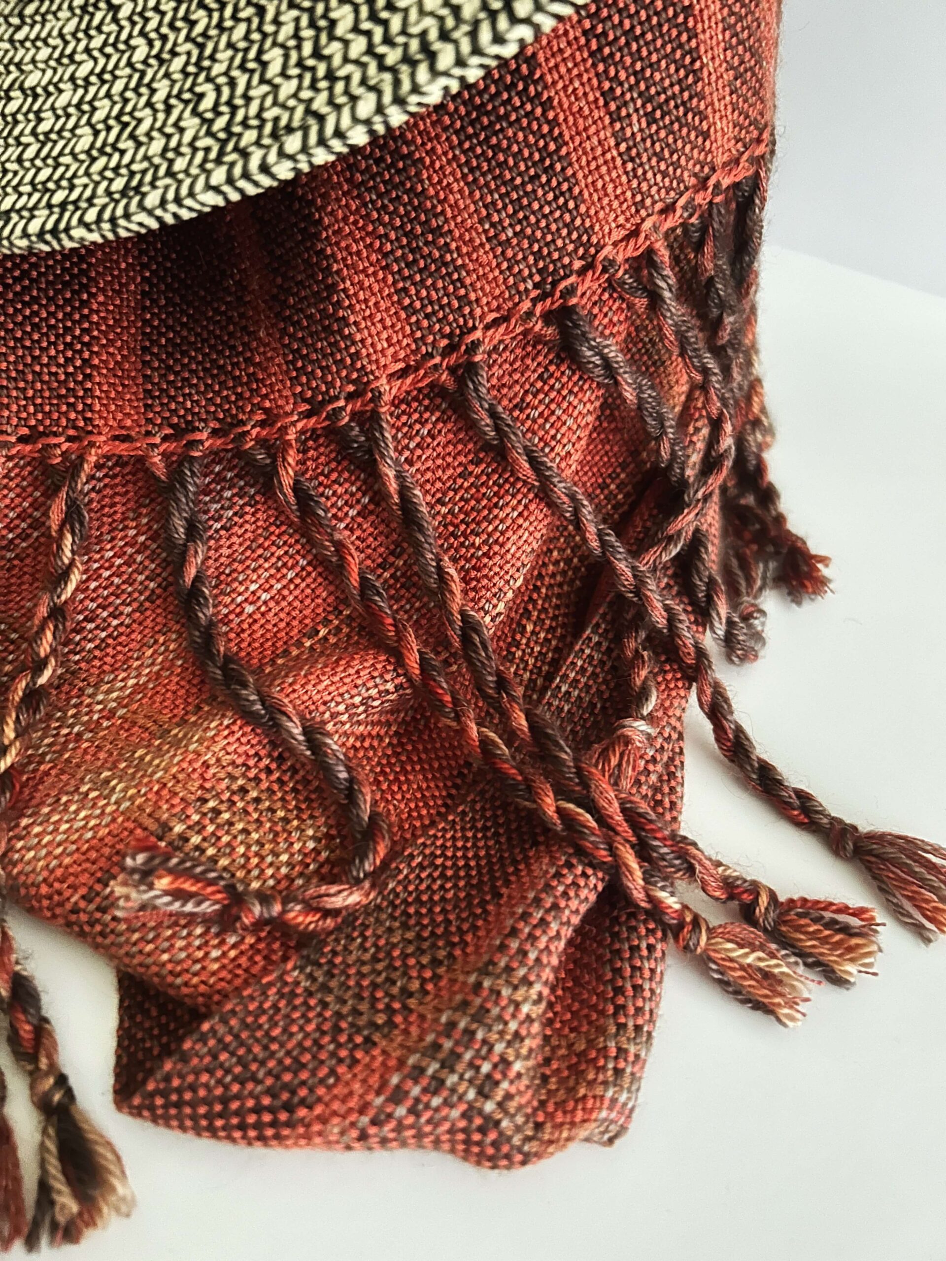 Anne has spent a lifetime working with fibre: spinning, knitting, needlepoint, cross-stitch and, most recently, weaving. Anne began weaving 10 years ago when a friend needed a temporary home for a floor loom.  After a busy career as a technology executive, retirement is giving Anne the opportunity to fully pursue weaving from her studio in Elora. Anne likes to work with finest fibres; sourced in Canada, organic when possible, and often hand spun and hand dyed.  She likes to make beautiful things that people will use every day. Scarves and shawls feature predominantly in her work.